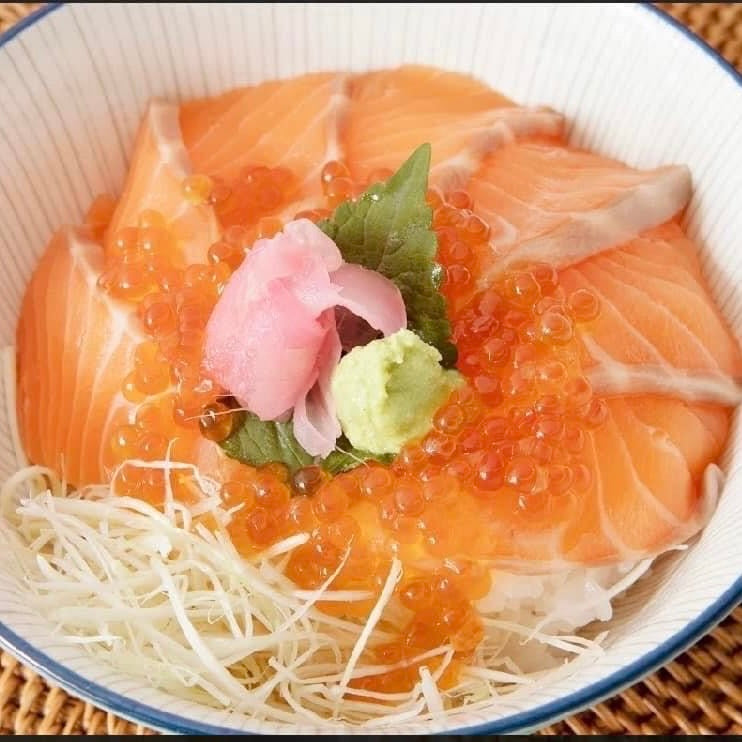 サーモンいくら丼 Cơm sashimi Cá Hồi phủ trứng Salmon Sashimi With Salmon Roe Rice Bowl